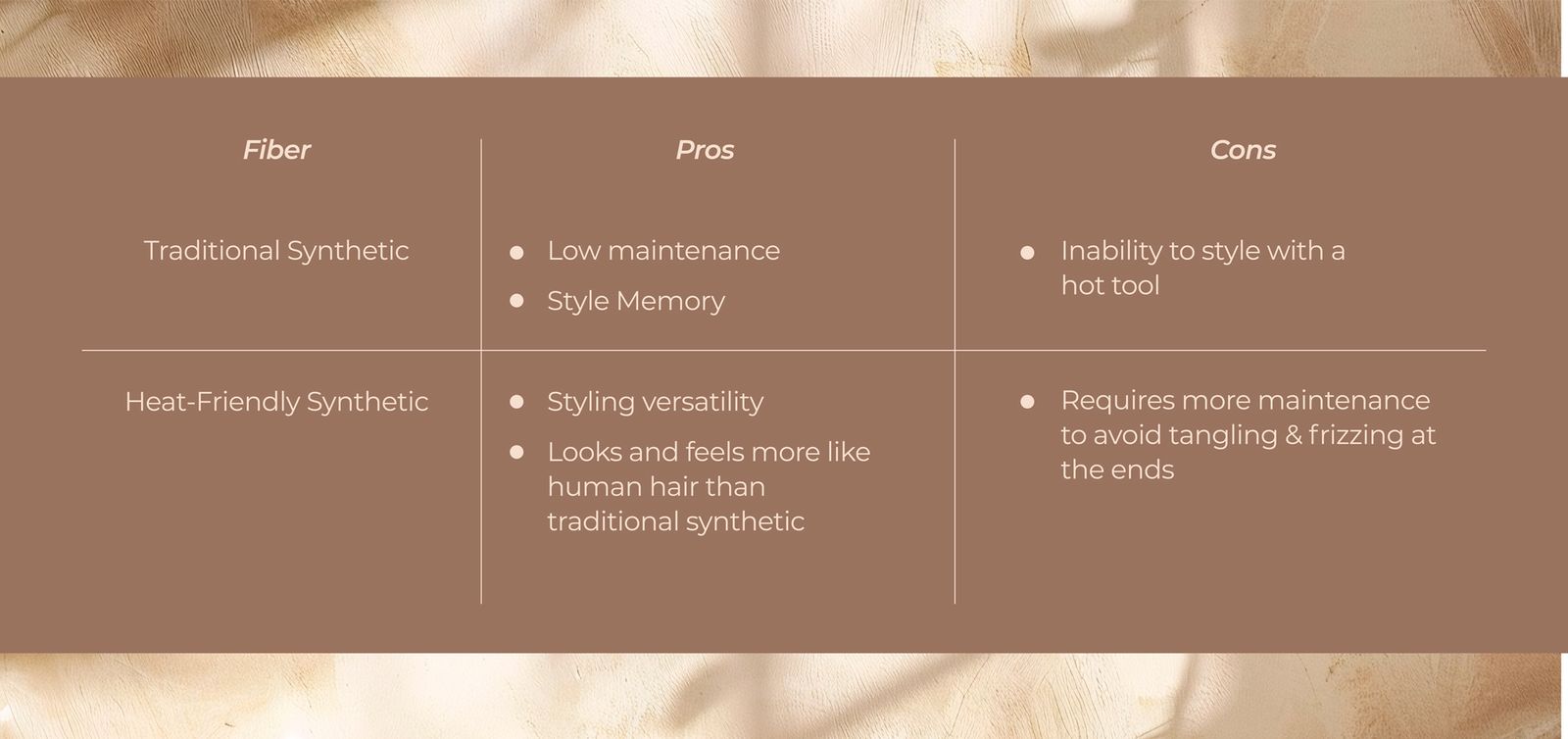 - Heat-Friendly and traditional synthetic fibers for versatile styling
