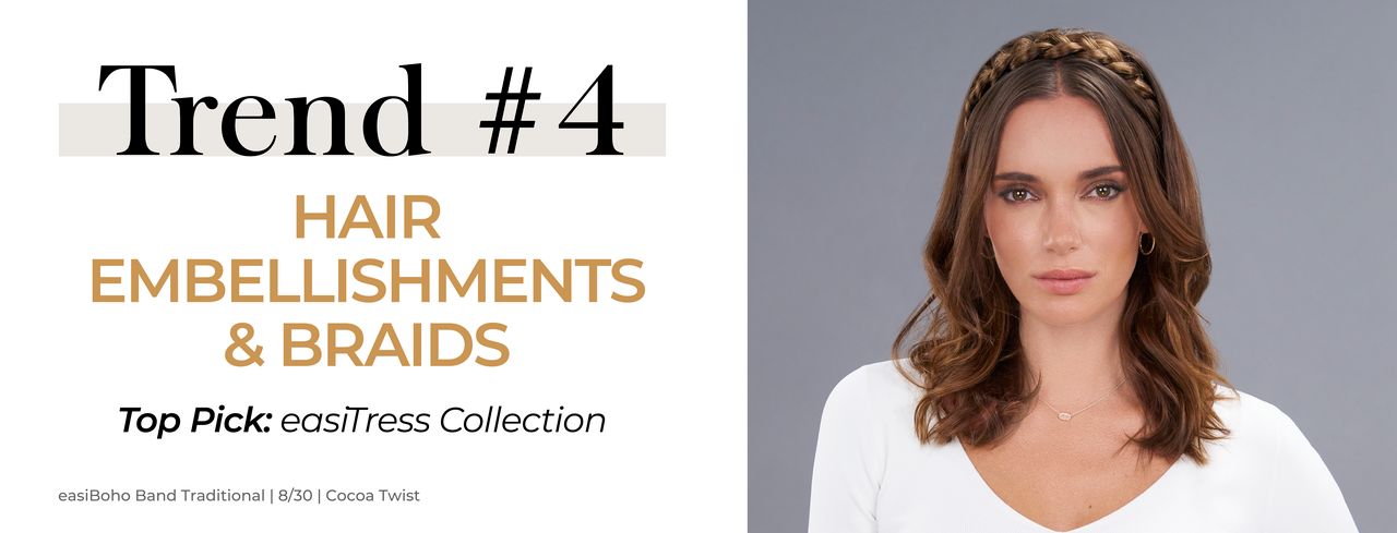With our easiTress Collection, you can explore a world of creative hairstyles. From voluminous halos and extensions to sleek ponytails, braided headbands and graceful buns, this collection makes it easy to embellish your look.